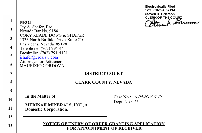 MDMN, a Nevada entity, has recently been placed into a Receivership proceeding in Nevada.