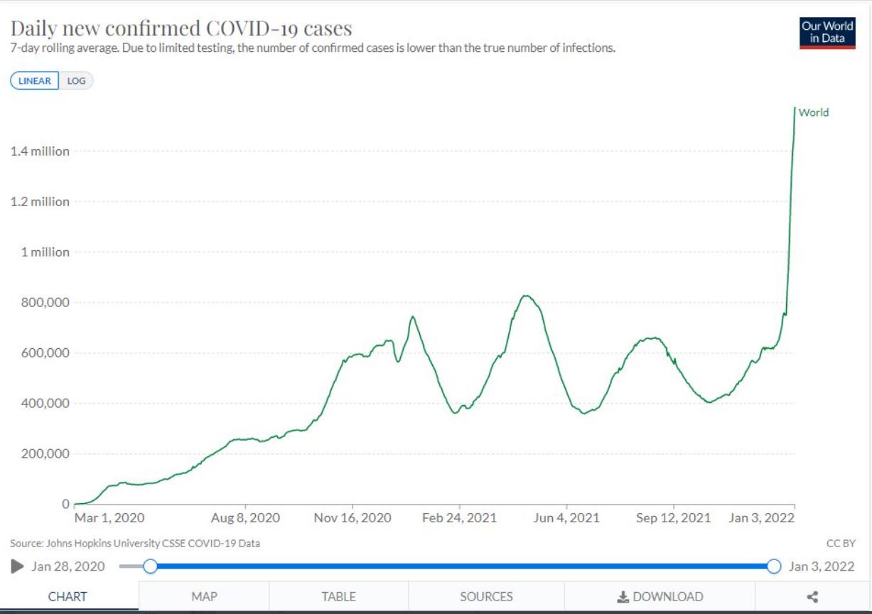COVID-Omicron variety has one of the highest RO values ever discovered. (RO >7) The other variants and future variants will also likely have high RO values especially since it is clear that immunity wanes quickly with this type of virus allowing for individuals to be re-infected over and over again. (4+ infections already in some.) (Note: The high R0 makes it very difficult to control. The R0 of the flu is near 1 which increases to just above that during optimum transmission conditions such as during the Winter. This creates a sort of once a year spike and allows a nice yearly schedule of a vaccine. COVID can strike multiple times a year only slowing down once it has burned through a population till the next variant emerges.)