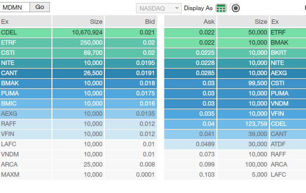Earlier CDEL was on the ask @ .0215 and backed off to the .024 it is currently setting on. Maybe, just maybe, the seller isn’t looking to be as active as in the past.