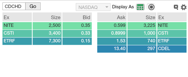 This is what I see 3,575 shares traded @ .69, then 280 shares traded @ .6399, and 113 shares traded @ .16