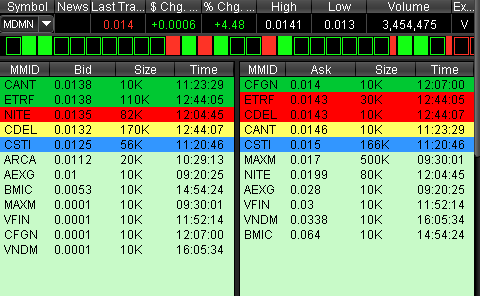Come on…It was .014 when we had 2 million shares traded today. Since then 3 million more shares have traded and the stock does not budge. REALLY? It wasn’t that long ago we had 60 million shares traded around .02 without any movement. This is extremely frustrating. You know it is mostly buying today, and the MM’s will not let it run. Enough already…
