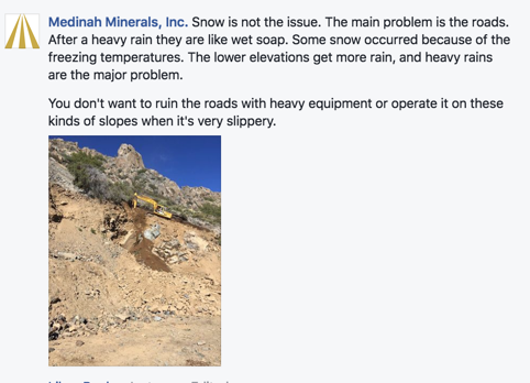 A small amount of precipitation changes dirt road conditions and the abilities of heavy equipment to operate safely. I’ve operated heavy equipment. I would not feel safe doing it on a steep slope in slippery conditions. Safety first. As it should be. Thanks to whom ever is driving the Facebook Medinah page for the update and photos.
