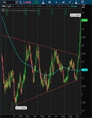 Trump has caused a big dollar dip. If this continues to fall it could fuel further commodity / copper gains.