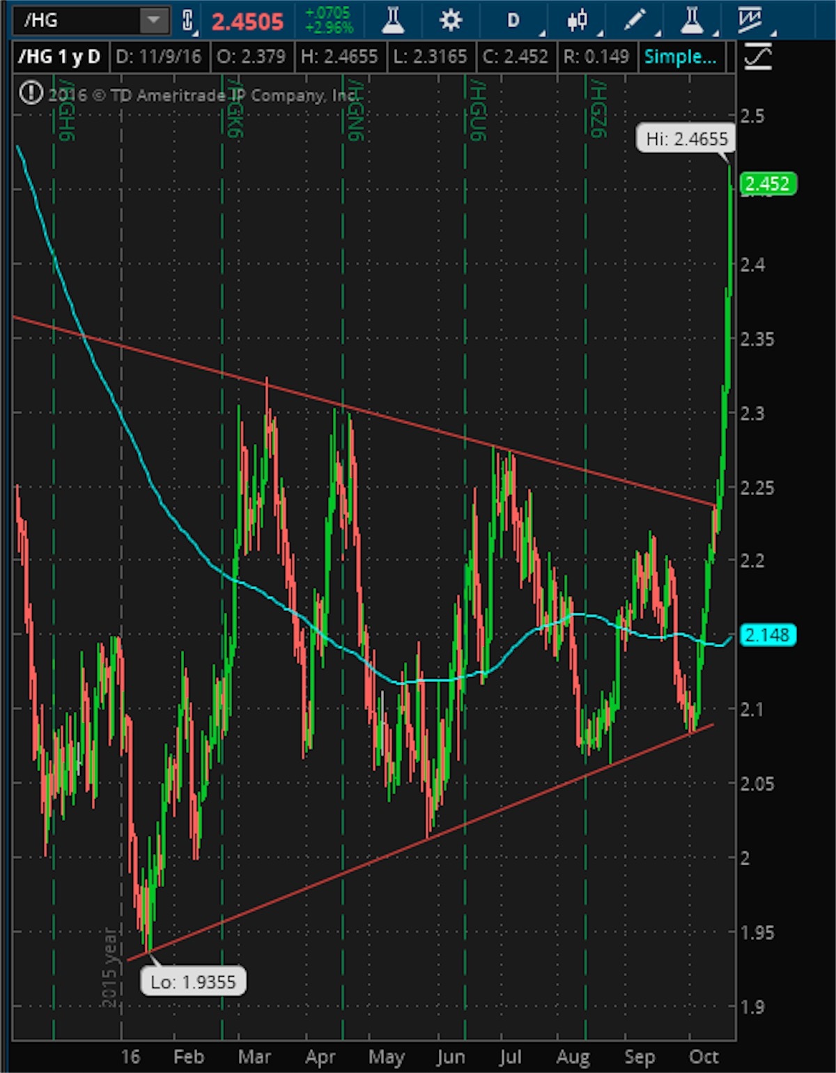 Gold is up 20% for the year. This will put copper just below that level for 2016.