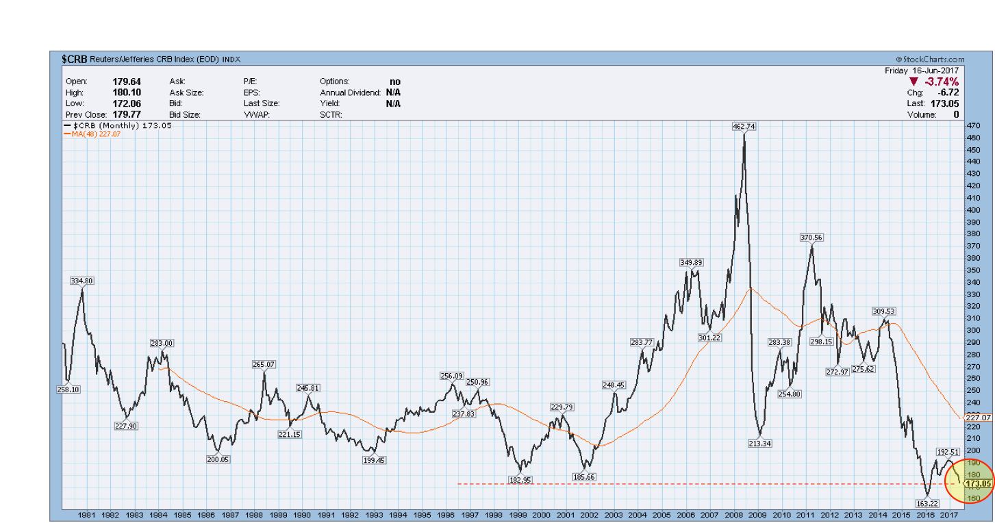 Don’t look now, but commodities are approaching the 2015 lows. Don’t be shocked if we hit new lows soon.
